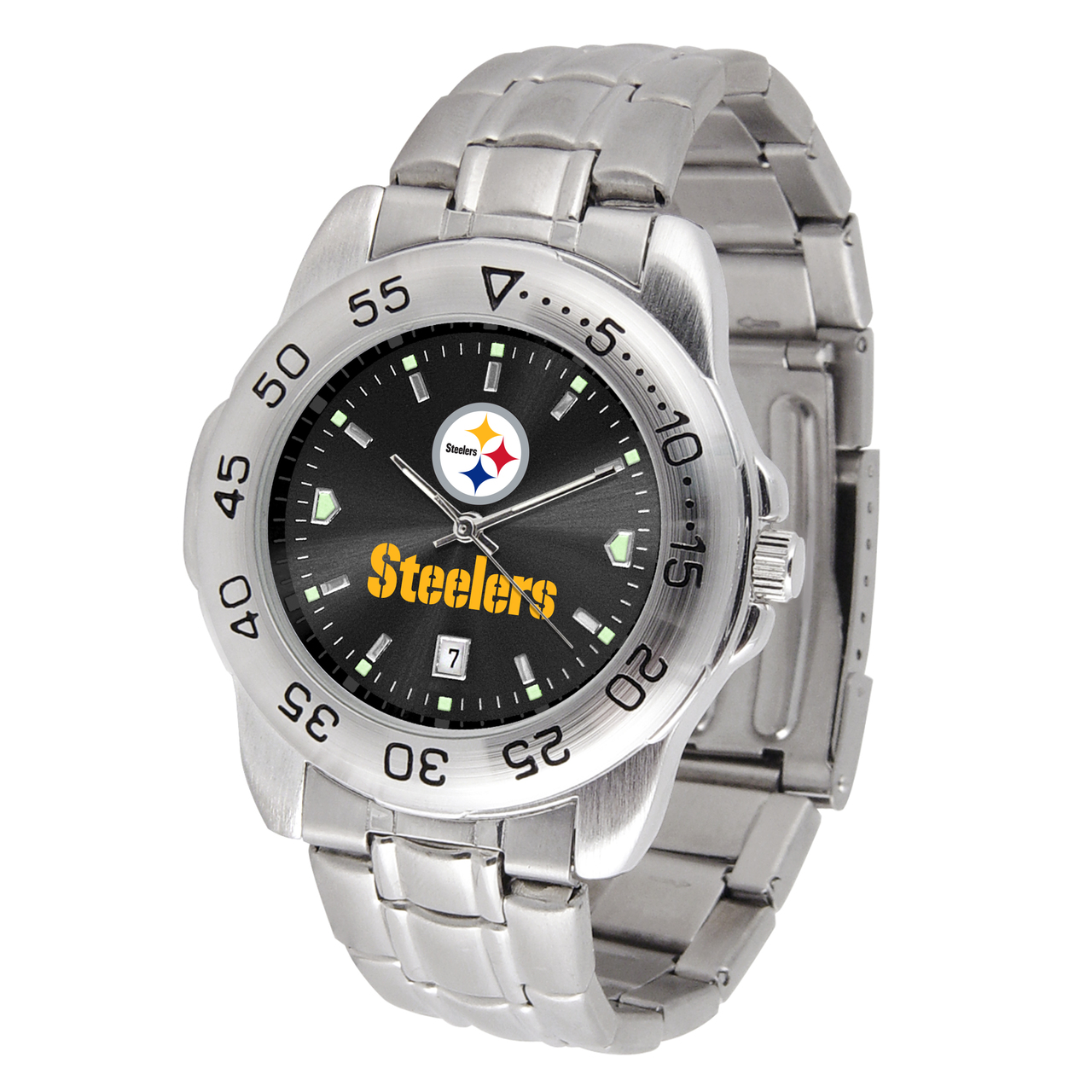 Whether youre at the stadium or on the couch, support your favorite sports team with this striking wristwatch with a stainless steel linked band and the team logo showcased on the watch face